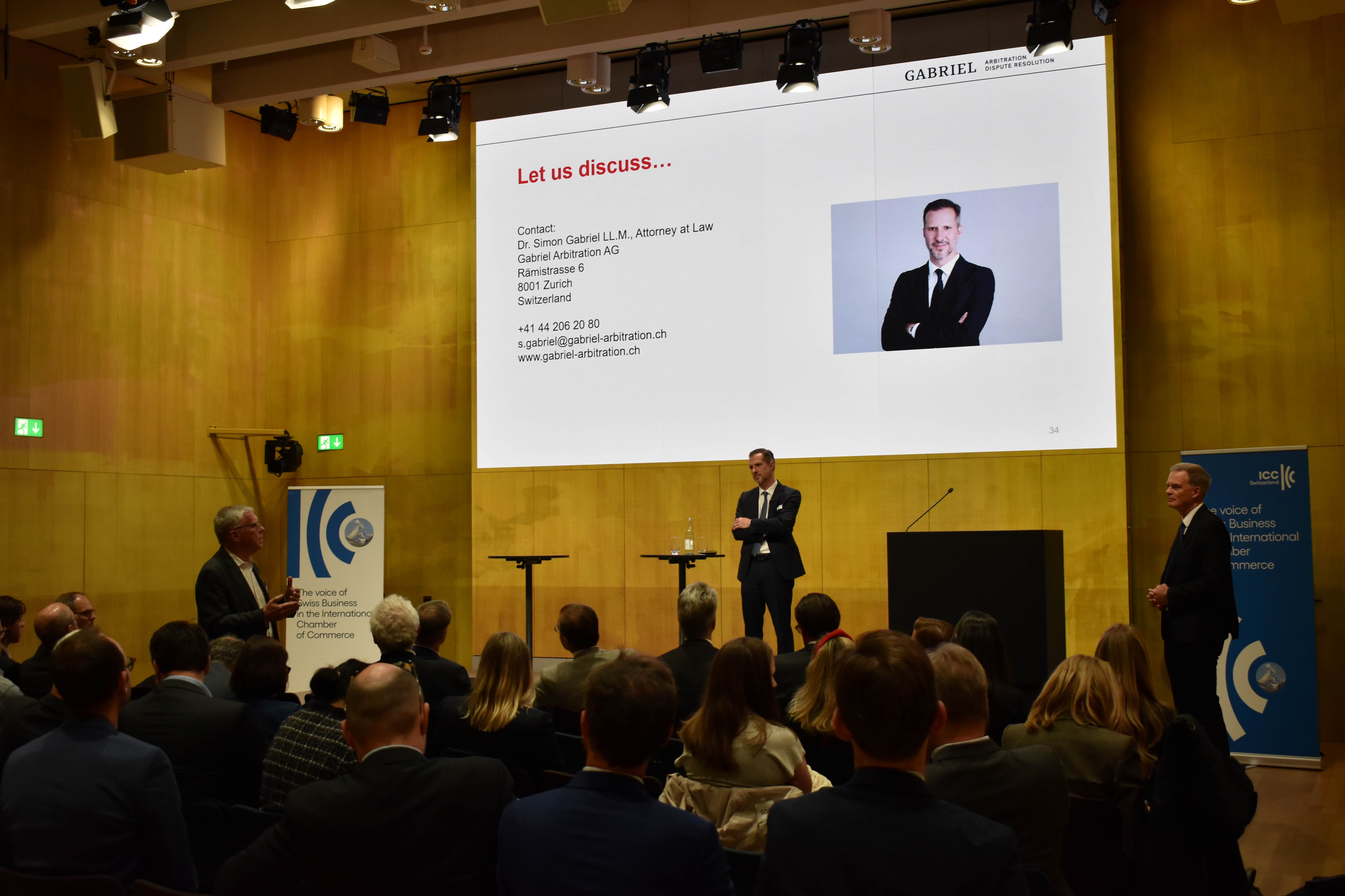 The keynote was followed by a discussion on “The Value of ICC Arbitration and Incoterms in Times of Tariffs and Trade Wars.” Simon Gabriel, President of the Swiss Commission of Arbitration & ADR, opened the discussion with a statement on the importance of reliable legal frameworks and globally trusted instruments in navigating today’s trade challenges.